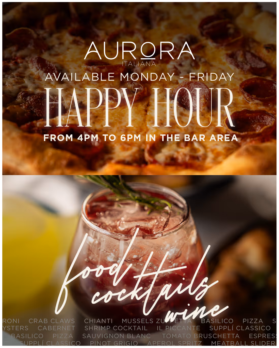 Enjoy Happy Hour in the bar area from 4pm to 6pm on Monday through Thursday